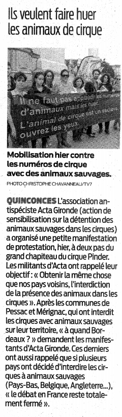 Les demandes des militants et sympathisants, de programmer une manifestation contre la détention d’animaux dans les cirques à l’occasion de la venue du cirque Pinder, remontaient pour les premières, au début de l’été.