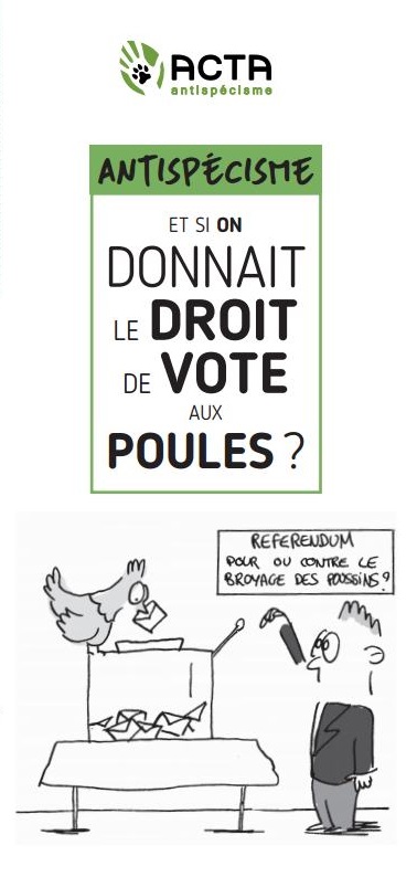 Nous avons aussi profité du temps libre pour ajouter au site web une petite bibliographie sous forme d’un carrousel de livres, qui défilent maintenant en bas de la page d’accueil et sur chaque page thématique (si vous avez des suggestions d’ouvrages sérieux que vous n’y trouvez pas, n’hésitez pas à nous contacter !), et on remercie Aurore et Insolente Veggie pour le dépliant antispécisme réalisé pendant l’été et désormais prêt à être distribué pour aborder ce sujet primordial.