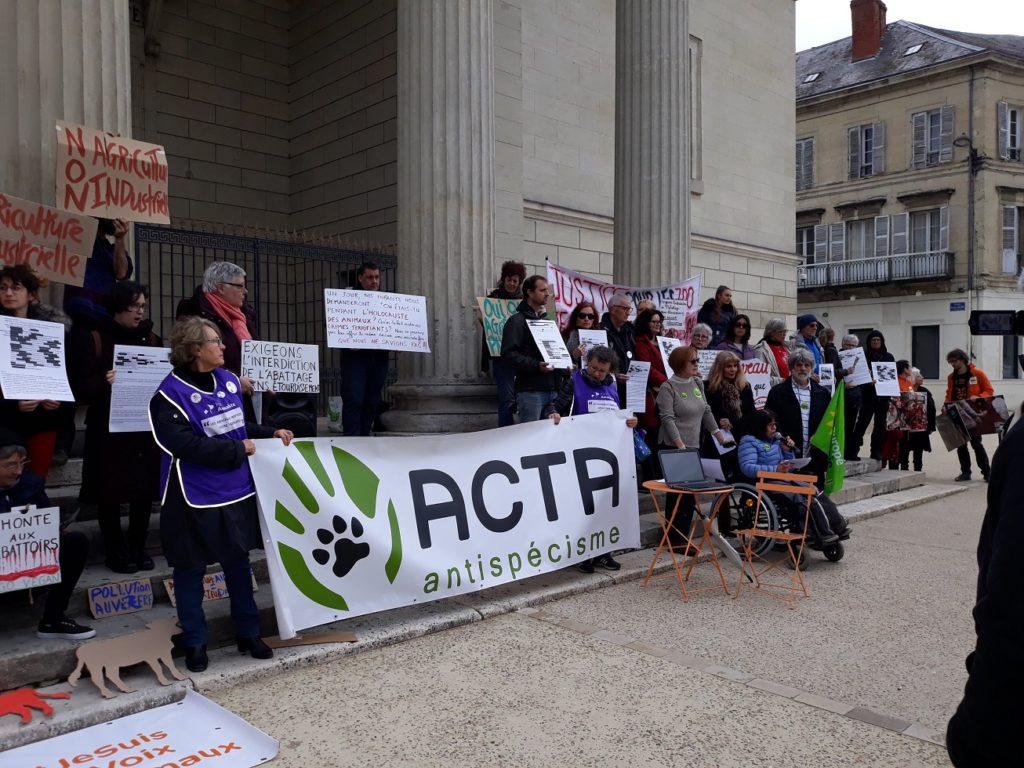 Le 29 février, nous étions à Périgueux pour soutenir la manifestation contre l’abattoir Sobeval, qui a malheureusement été autorisé à rouvrir après la pression des lobbies agricoles.
