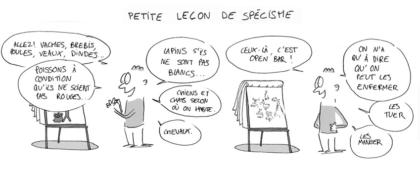 En France, dès les années 1990 avec les Cahiers antispécistes, on voyait émerger une définition claire du spécisme : “Le spécisme est à l’espèce ce que le racisme et le sexisme sont respectivement à la race et au sexe: la volonté de ne pas prendre en compte (ou de moins prendre en compte) les intérêts de certains au bénéfice d’autres, en prétextant des différences réelles ou imaginaires mais toujours dépourvues de lien logique avec ce qu’elles sont censées justifier. En pratique, le spécisme est l’idéologie qui justifie et impose l’exploitation et l’utilisation des animaux par les humains de manières qui ne seraient pas acceptées si les victimes étaient humaines.”