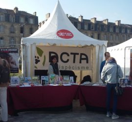 Tous les ans, Bordeaux organise Cap Associations, une journée au Hangar 14 où de nombreuses associations et antennes locales viennent se présenter au public avec un stand et parfois une conférence. ACTA était présente cette année, et nous avons même ouvert la journée avec une petite conférence sur l’antispécisme et sur nos actions, à 11h30 – qui s’est ensuivie à […]