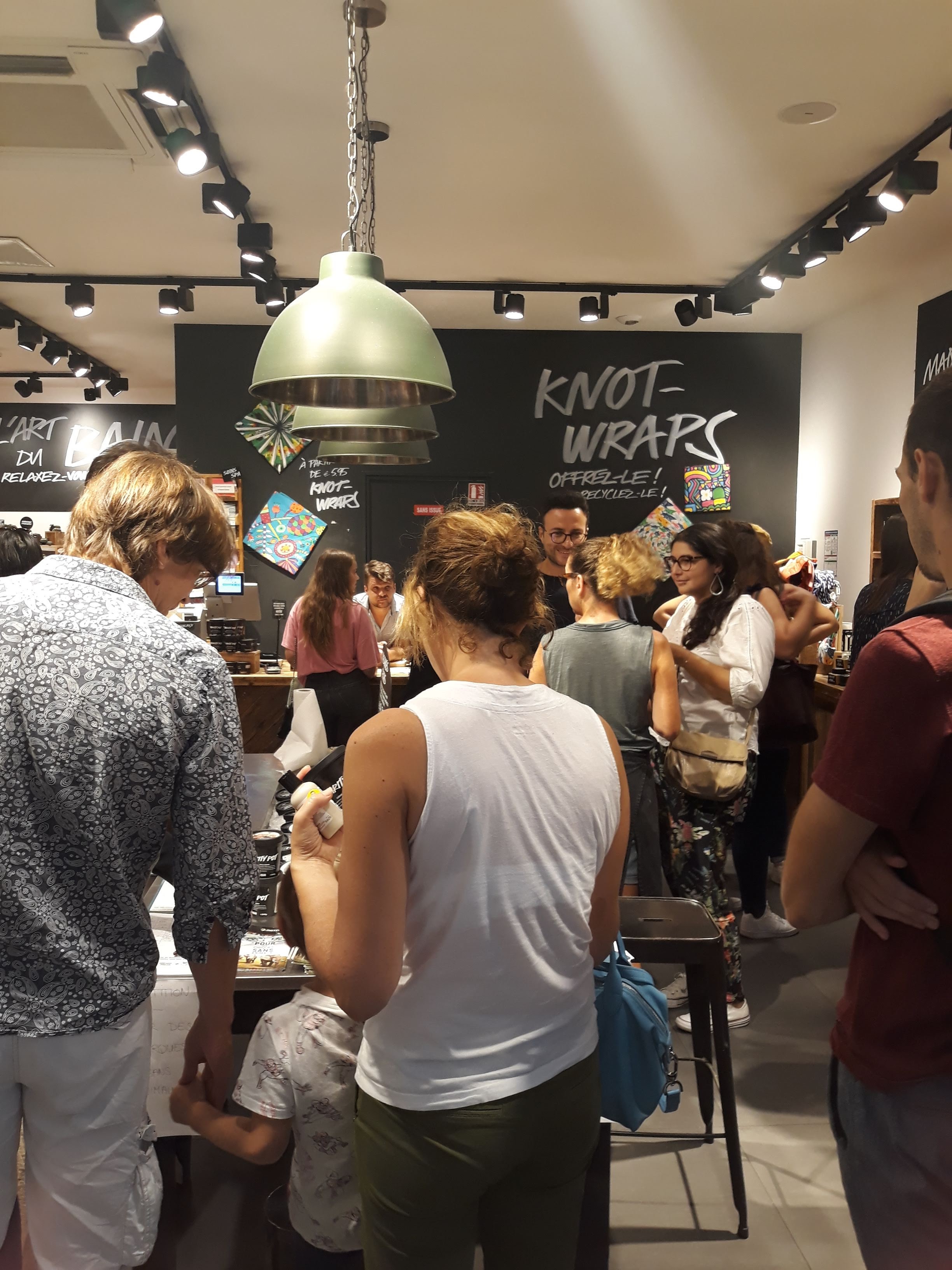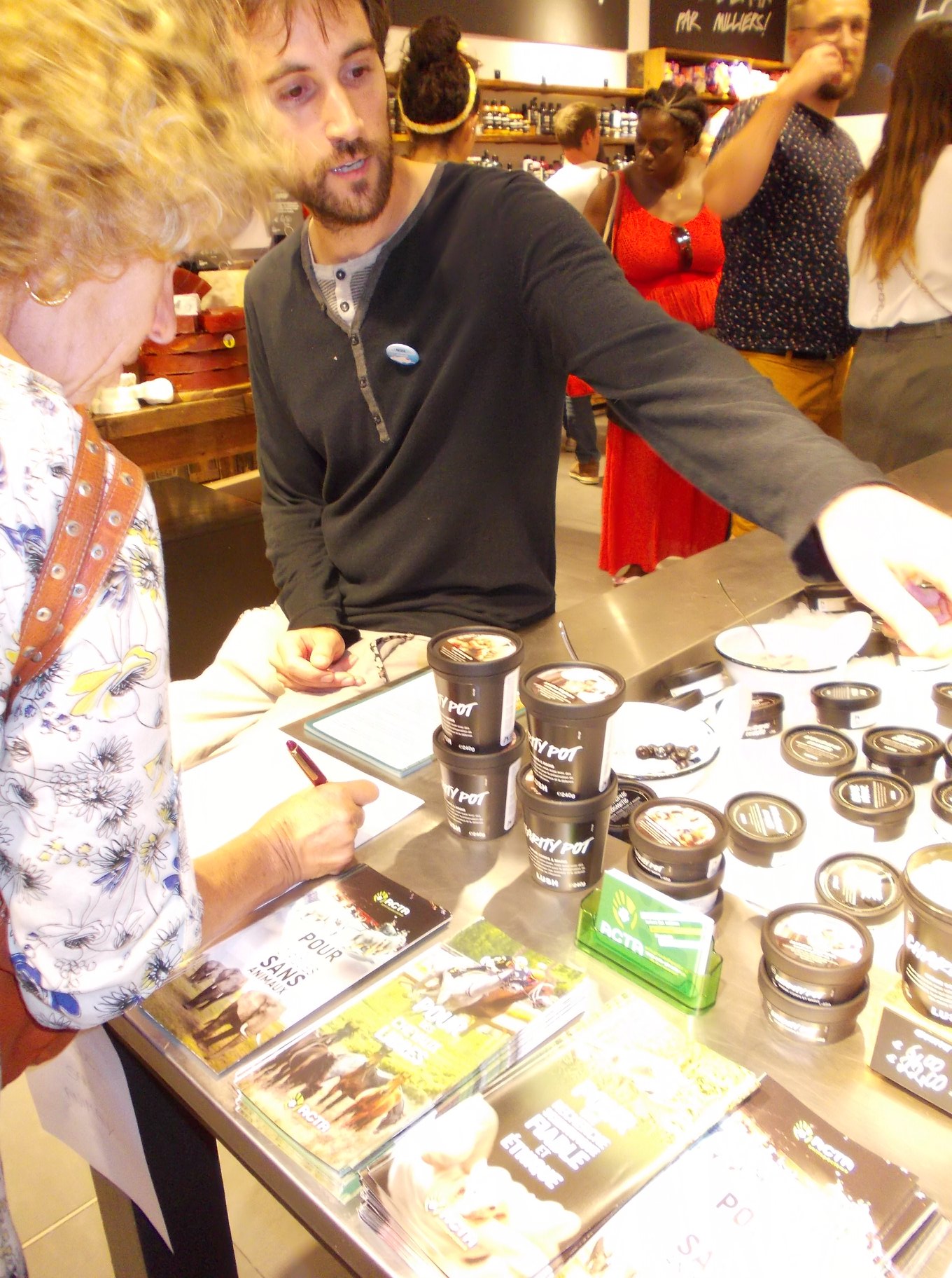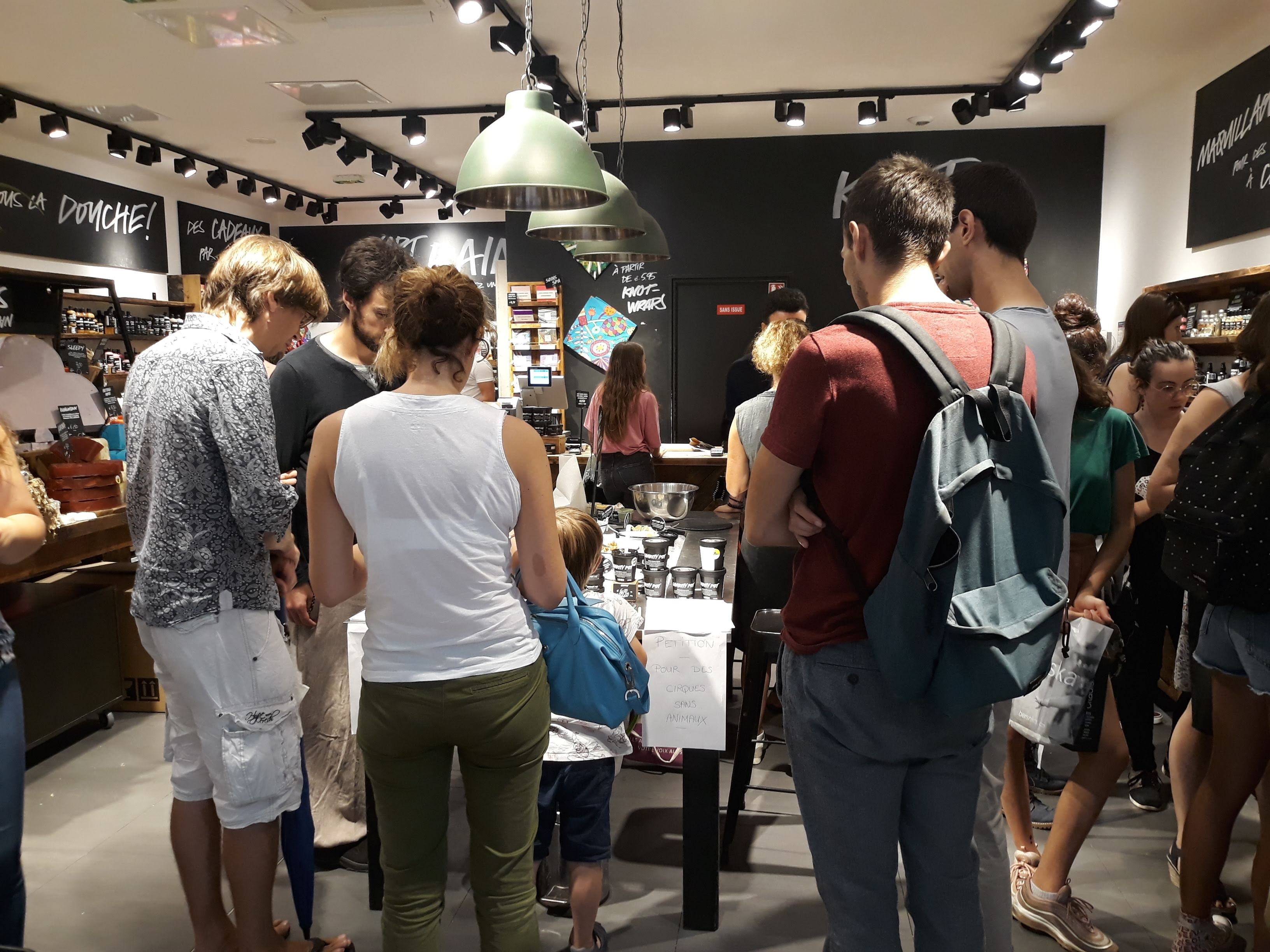 L’accueil chaleureux de la team Lush nous a permis de nous sentir à l’aise dès l’ouverture avec l’arrivée des premiers clients. Et c’est dans une ambiance olfactive forte, liée à la multitude de produits proposés par la marque, la dynamique des conseillers/vendeurs, les nombreux pics de fréquentation de clients dans le magasin, les aller-venues, que les heures ont défilé dans un quasi brouhaha permanent.