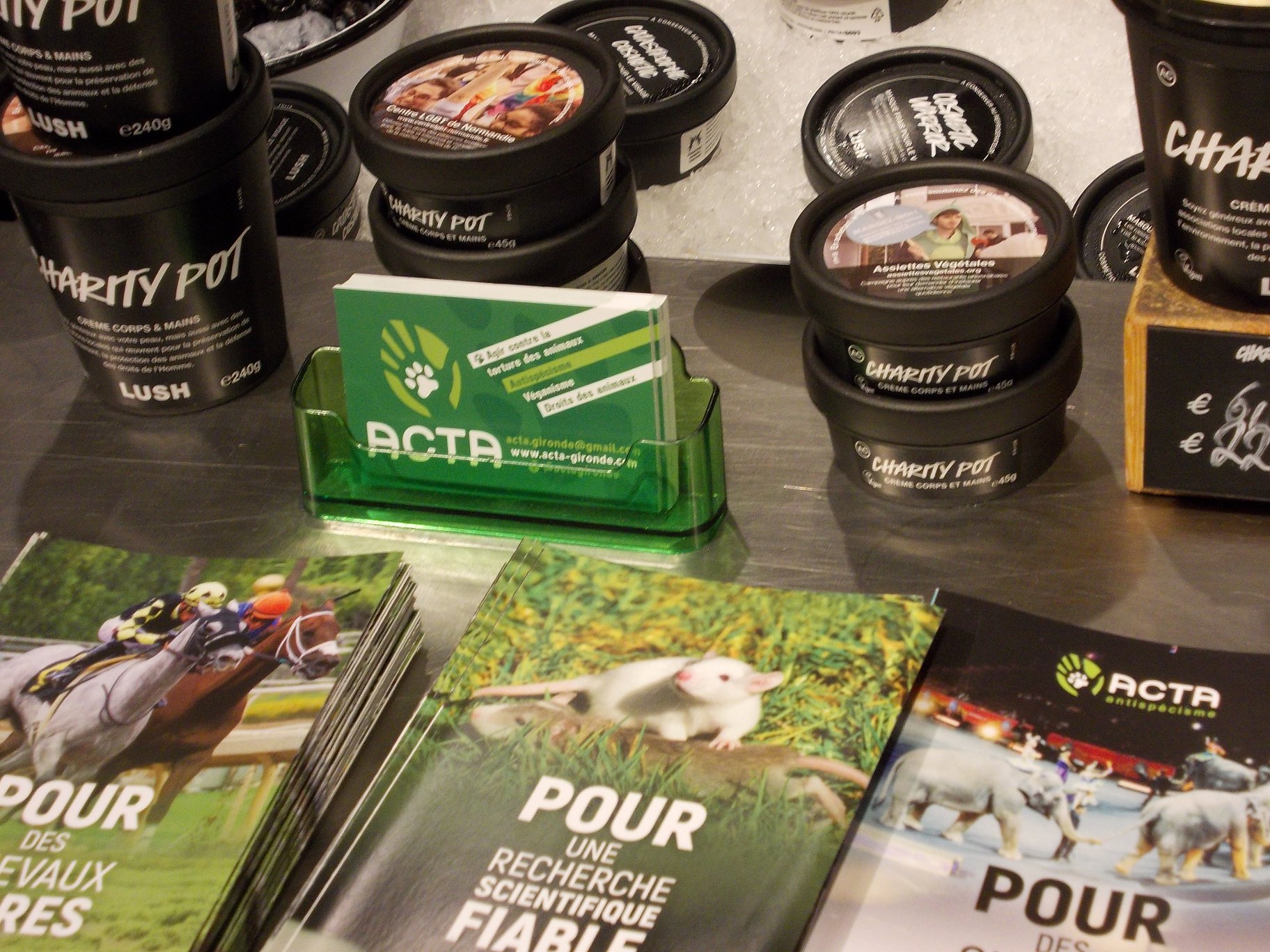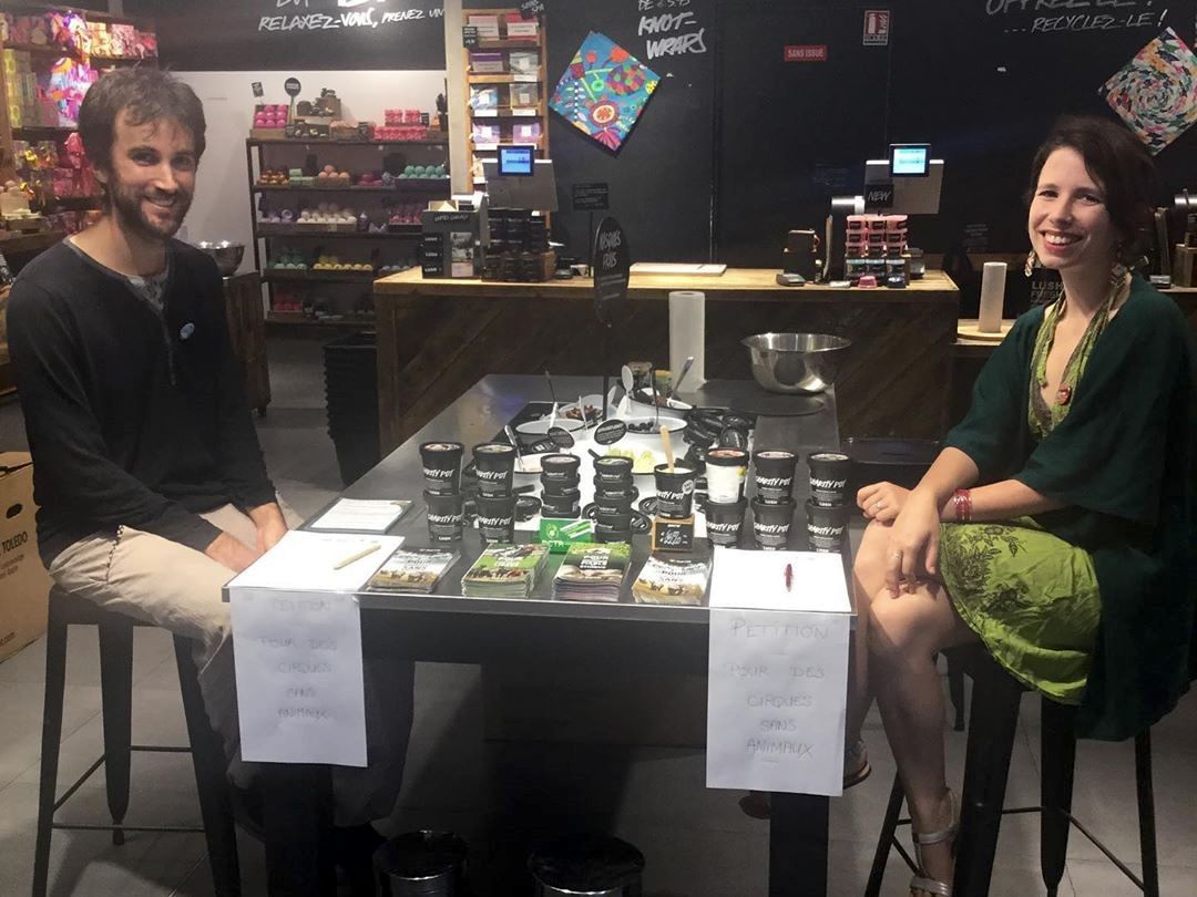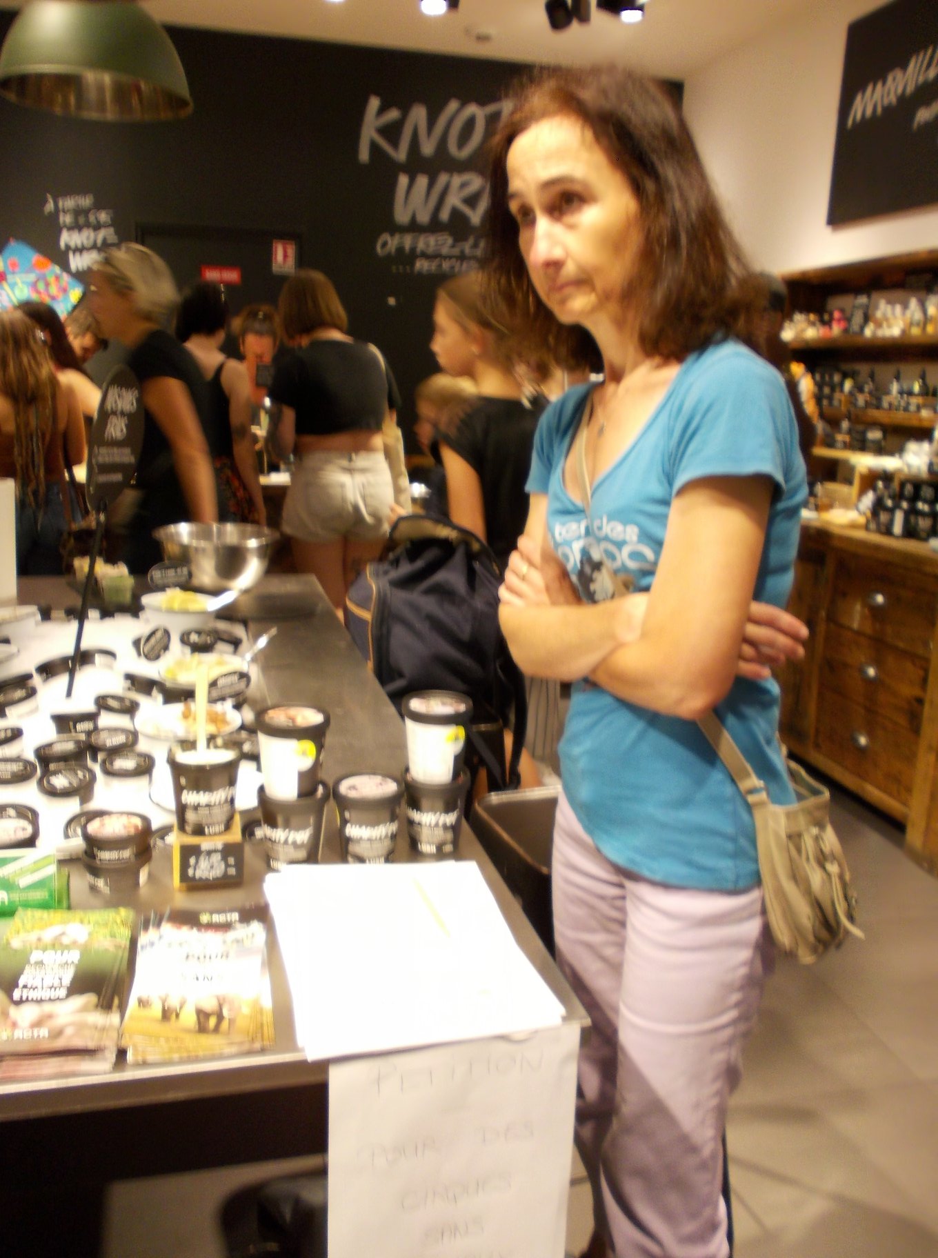Comme prévu, samedi 14 septembre, des membres de l’équipe d’ACTA étaient présents toute la journée dans la boutique Lush Bordeaux pour une Charity Pot Party et pour faire signer la pétition destinée au Maire de Bordeaux afin qu’il se prononce en faveur de l’interdiction des cirques avec animaux sauvages.