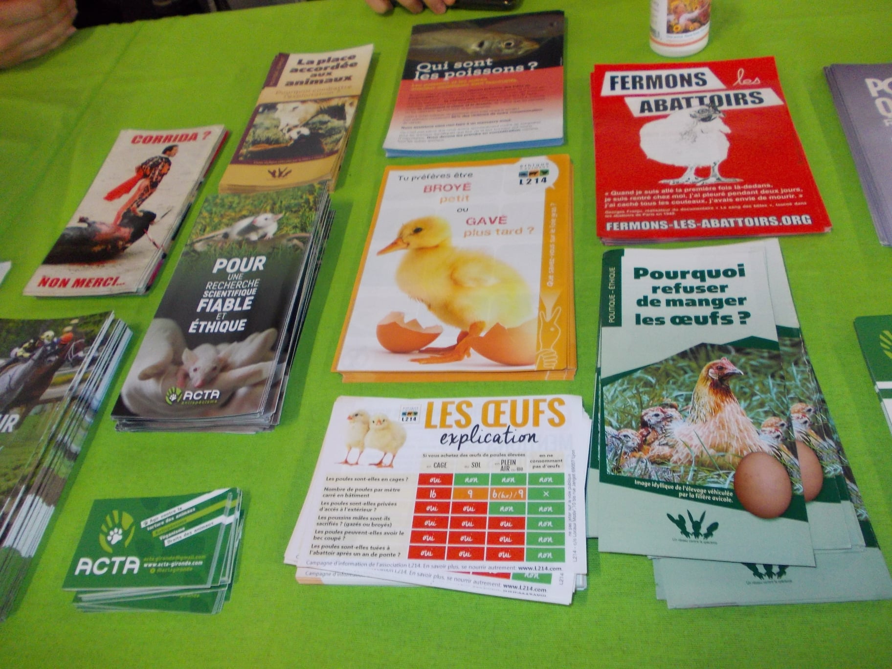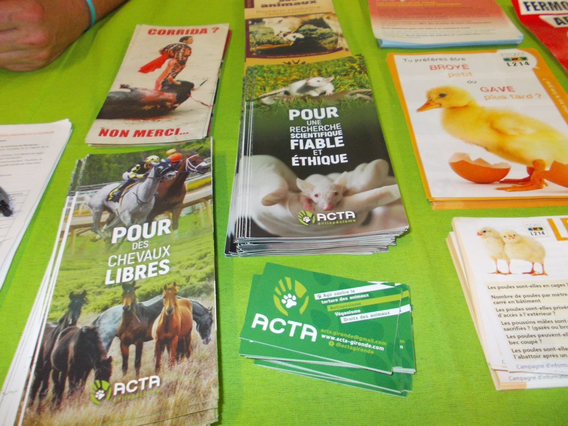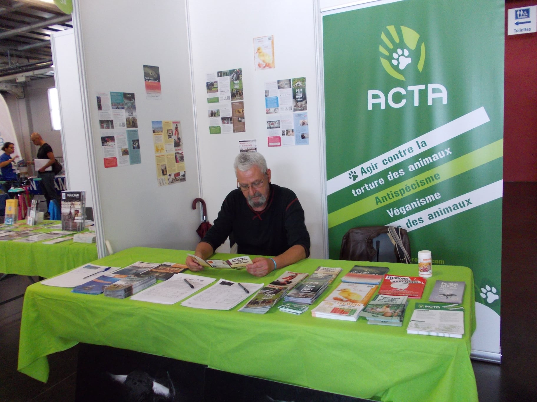 ACTA était présente cette année, et nous avons même ouvert la journée avec une petite conférence sur l’antispécisme et sur nos actions, à 11h30 – qui s’est ensuivie à midi d’une longue discussion avec une des personnes qui avait assisté à la conférence… et qui n’était pas d’accord du tout avec nous. Espérons que la discussion ait pu lui faire prendre conscience des préjugés qu’elle avait sur le mouvement antispéciste et de l’influence des médias sur l’image publique du mouvement et de ses revendications.