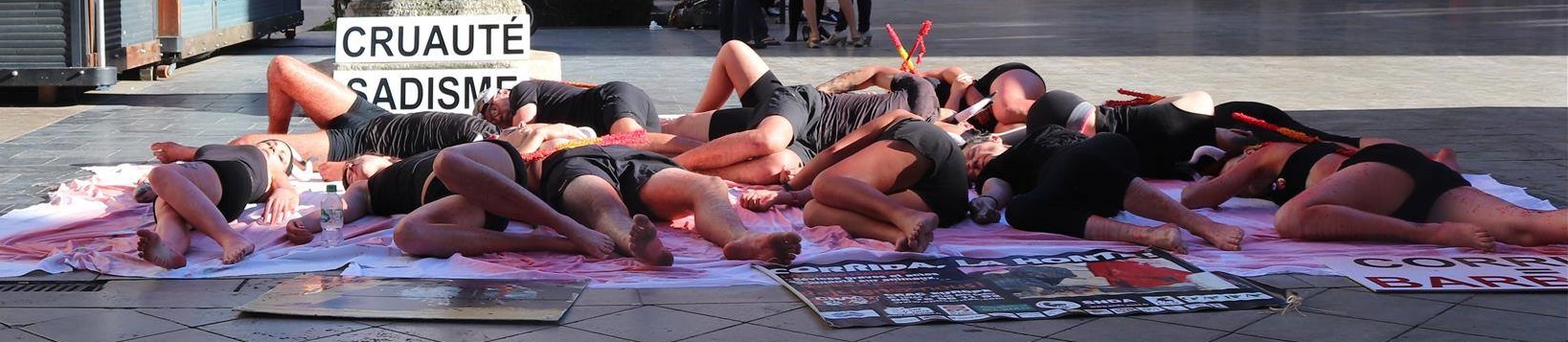 Alors que la saison de corrida bat son plein, à la veille de deux manifestations en Gironde (Captieux le 2 juin, la Brède le 22 juin), nous avons collaboré avec le Collectif Landes Anti-Corrida pour organiser un happening sur la place Saint Projet le vendredi 31 mai de 17h à 20h, afin d’appeler la fin de la corrida.
