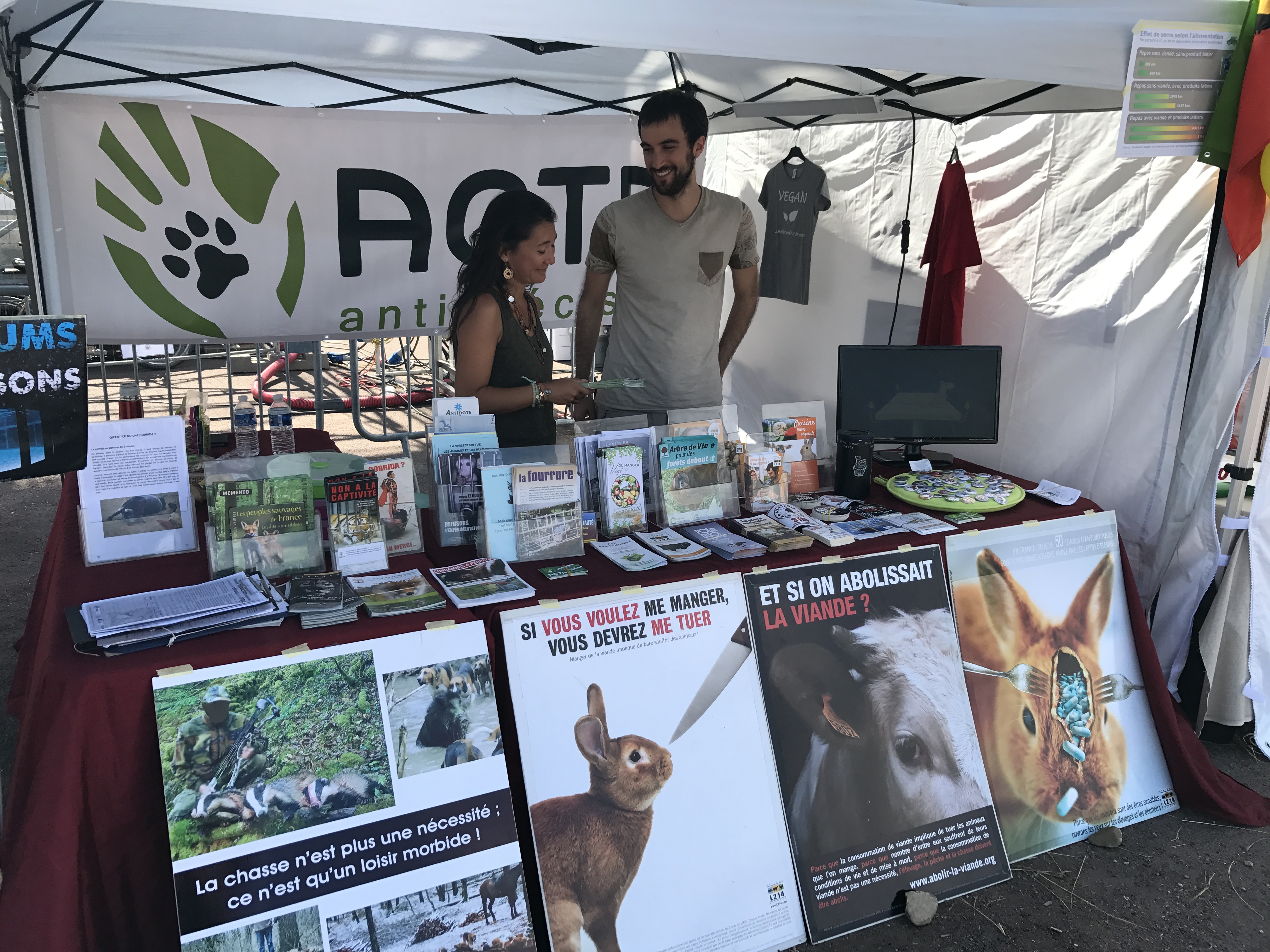 Et puis il y a le festival en lui même : de la bonne musique, des festivaliers curieux, festifs, amusants pour certains sans jamais d’agressivité ou de mépris …. sauf deux personnes qui ont insulté deux de nos bénévoles. C’étaient des éleveurs visiblement ivres en plus. Il faut dire que face à la baisse constante de consommation de viande et des scandales réguliers dans les abattoirs et les élevages, ces gens là sont de plus en plus nerveux ! Mais cela n’a en rien gâché ces trois jours bien remplis. D’autant plus que côté restauration, l’offre végétar/lienne était aussi variée que succulente !