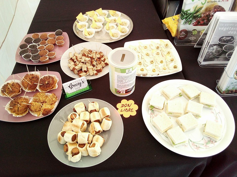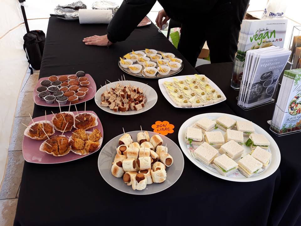 En effet, des rencontres et discussions avec des personnes intéressantes et intéressées, contentes de nous voir à Libourne. Surtout que nous avions de quoi bien accueillir les curieux avec nos dégustations salées et sucrées réalisées pour les premières par le Président d’ACTA, Michel et pour les secondes, notre partenaire traiteur végétalien Greasy’s.
