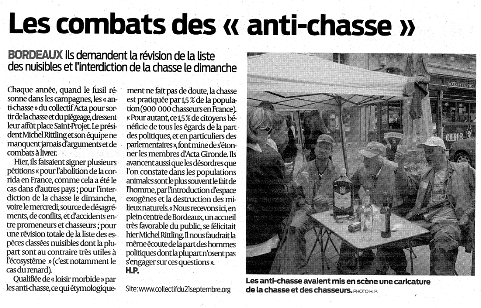 Hier, stands d’informations contre la chasse suite à l’appel du collectif 21.