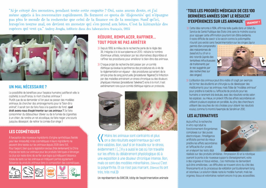 Depuis 1959, le milieu de la recherche parle de la règle des 3R, intégrée à la loi européenne en 2010 : réduire le nombre d’animaux utilisés, remplacer par les alternatives disponibles et raffiner les procédures pour améliorer le bien-être des animaux. Dans les faits, la situation apparait beaucoup moins soucieuse des animaux en tant qu’individus.