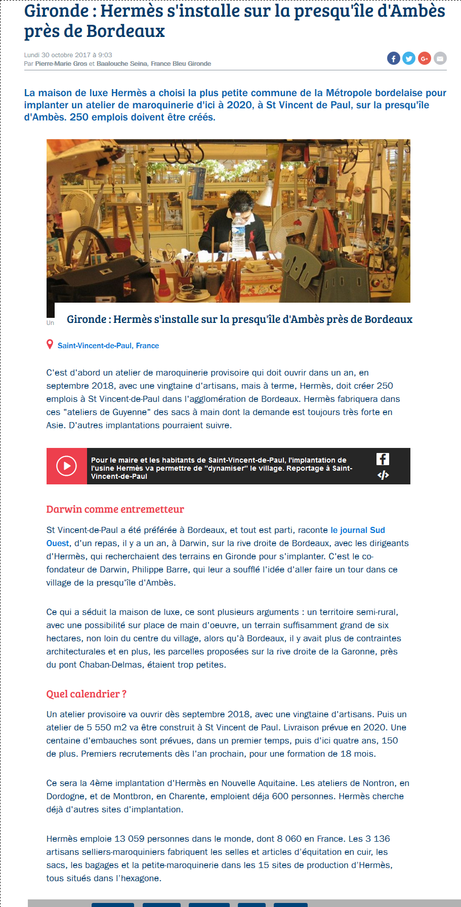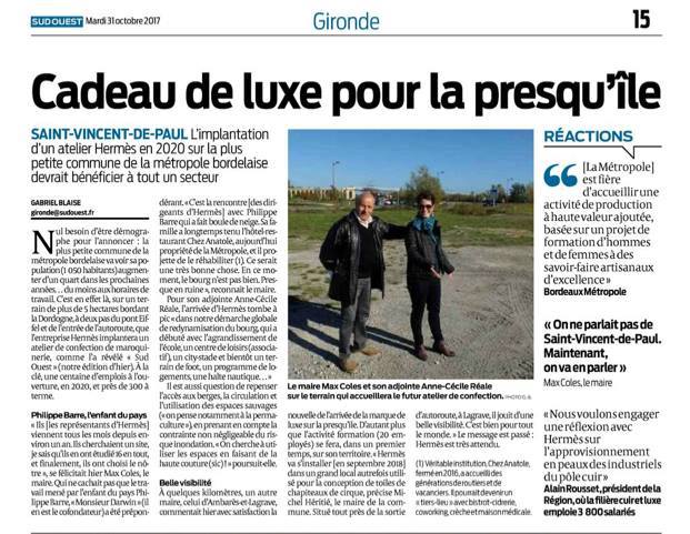 Implantation d’un atelier de maroquinerie de la société Hermès à St Vincent de Paul, en Gironde… ACTA & One Voice se mobilisent !