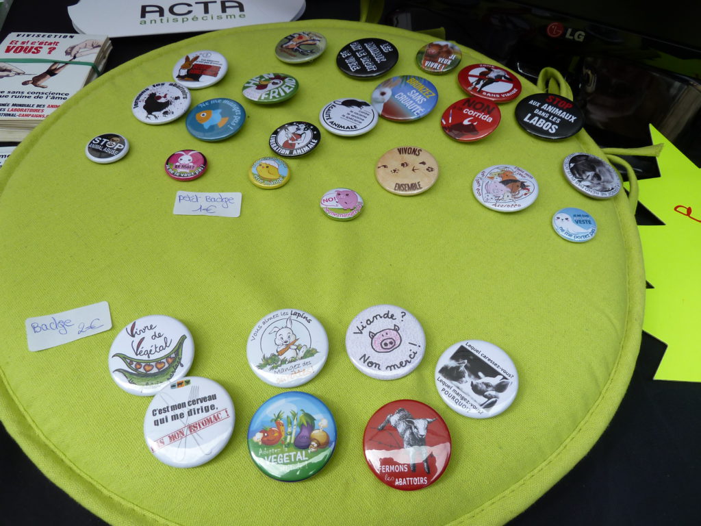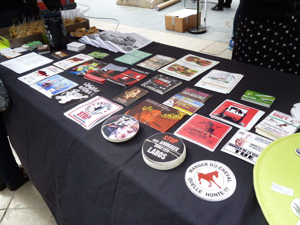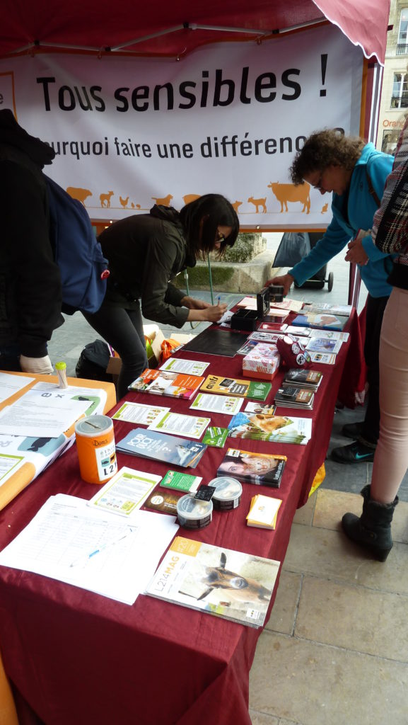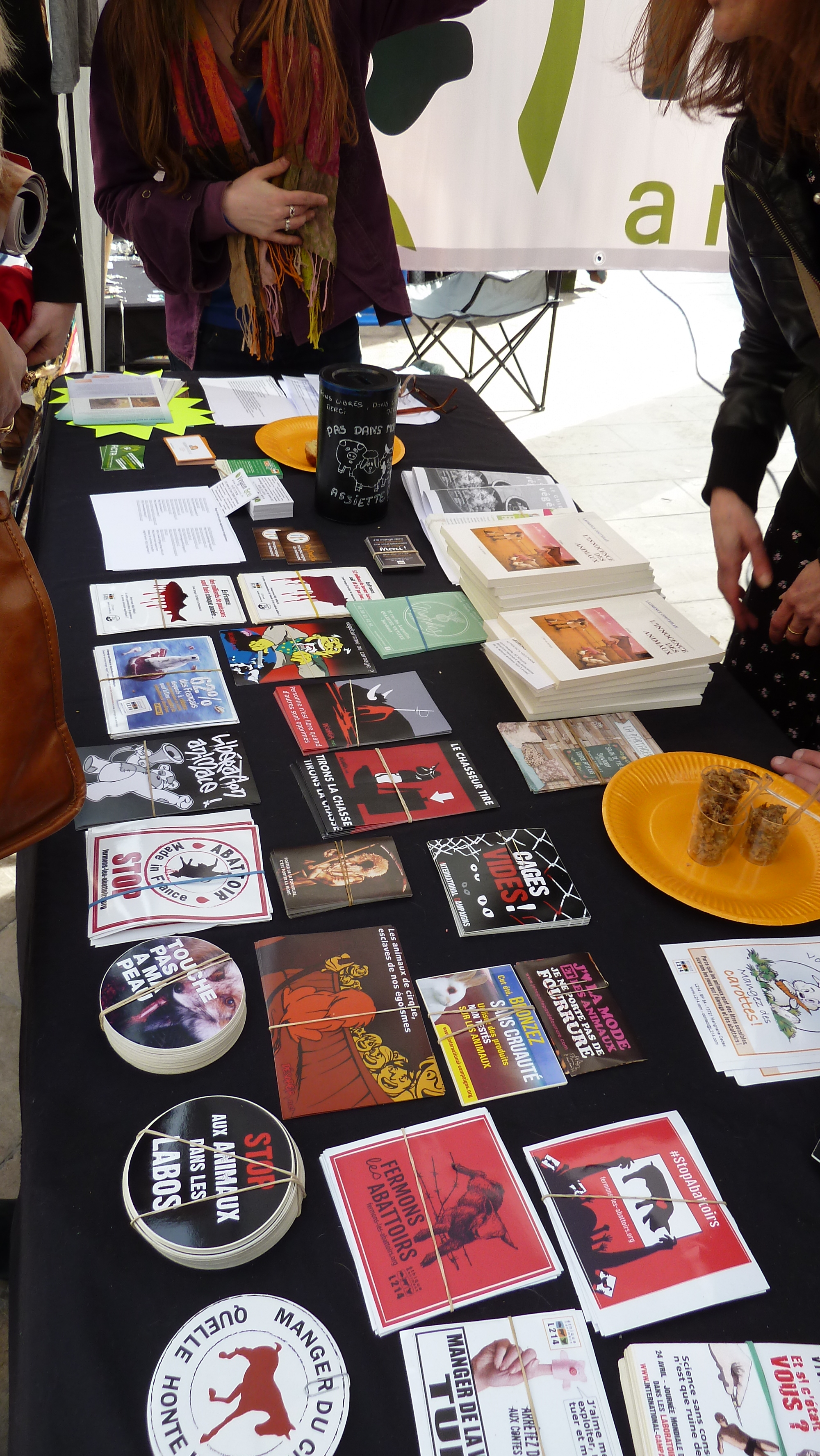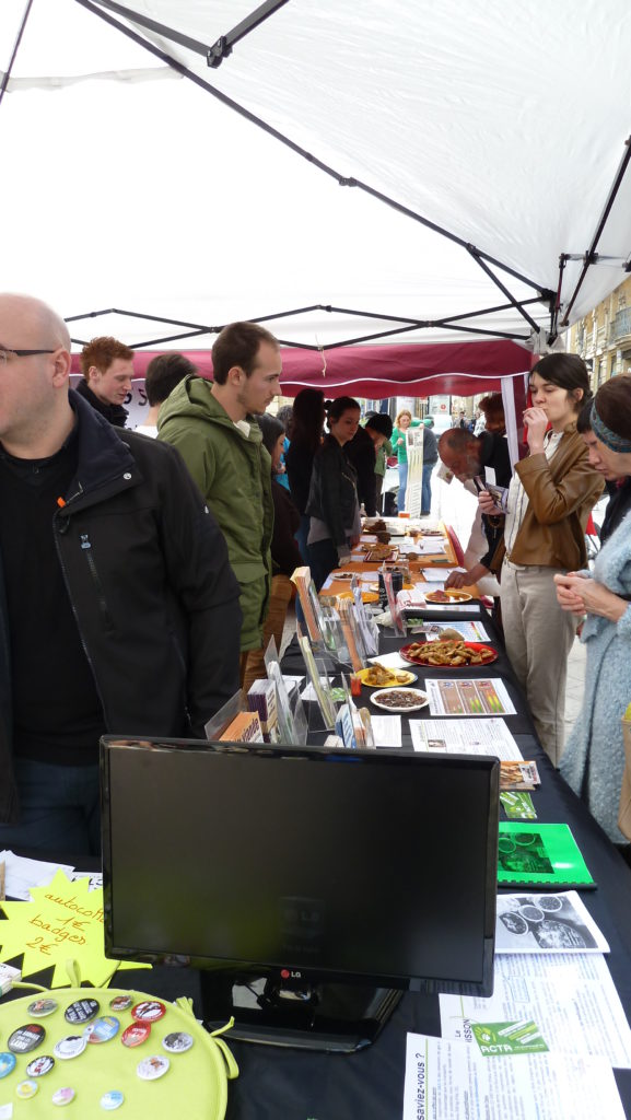 Sur les stands, bien-sûr, toutes les informations utiles à la sensibilisation des passants, flyers, dépliants, militants pour répondre aux différentes questions sans oublier la boutique (autocollants, badges et tee-shirts).