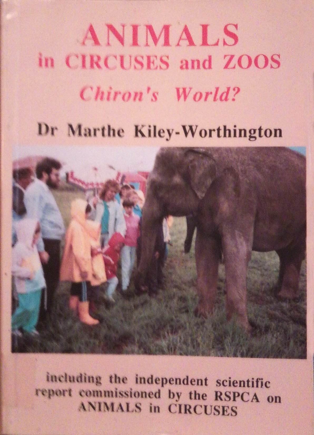 On voit aussi revenir le nom de Marthe Kiley-Worthington, éthologue ayant réalisé en 1990 un rapport sur le bien-être des animaux dans les cirques à la demande de la RSPCA anglaise (société de protection des animaux), qu’elle a ensuite auto-publié avec le soutien financier de l’Association des Propriétaires de Cirques (ACP) (Kiley-Worthington 1990). Elle y conclut que s’il existait des problèmes de bien-être dans certains cirques, il ne fallait pas pour autant bannir l’utilisation des animaux par les cirques. Worthington est spécialiste des chevaux, des animaux d’élevage et de l’agriculture biologique. Aucune publication scientifique de sa part ne s’intéresse aux animaux dans les cirques.